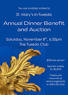 Autumn is always an exciting time in Tuxedo, and in just over two weeks St. Mary’s will host our annual fundraiser—this year a dinner and auction at the Tuxedo Club. This year, Lili has curated some incredible auction items, and it is always a glamorous and fun night for a great cause. We love our church where all are welcome to come and experience the beauty of holiness, and it is our job to make sure that legacy continues long into the future. This year we are focusing in on some capital restoration projects that are in need of attention.