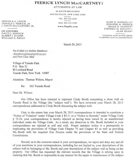Below, please find the latest round of correspondence between the Village and Ms. Booth’s Attorney.